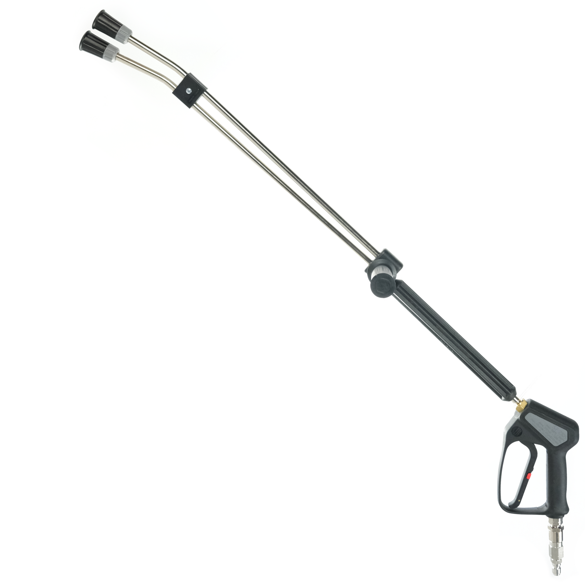 This cost effective solution allows for streamlined operation of any downstream injector, while the hard piped layout eliminates any potential leaks between the trigger and lance. The Mosmatic DGV Inline Swivel reduces user fatigue, and the Suttner ST-2305 Trigger Gun is a very durable option that will hold up against heavy use.