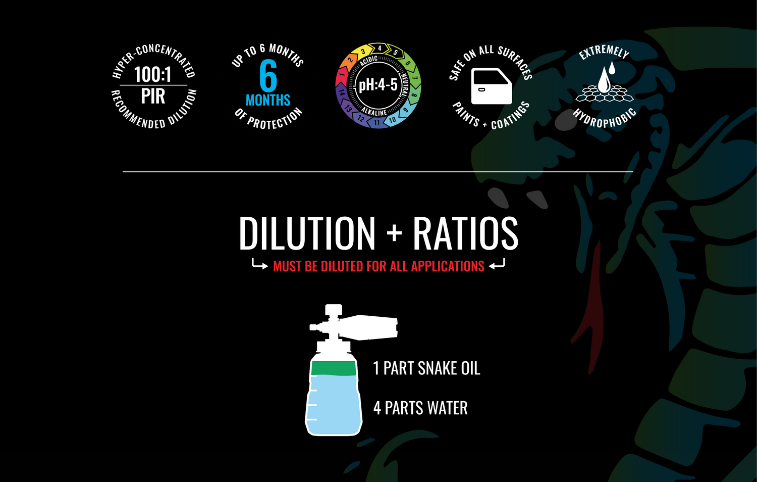 In your Chrome Cannon bottle, mix 4 parts water to 1 part Snake Oil.