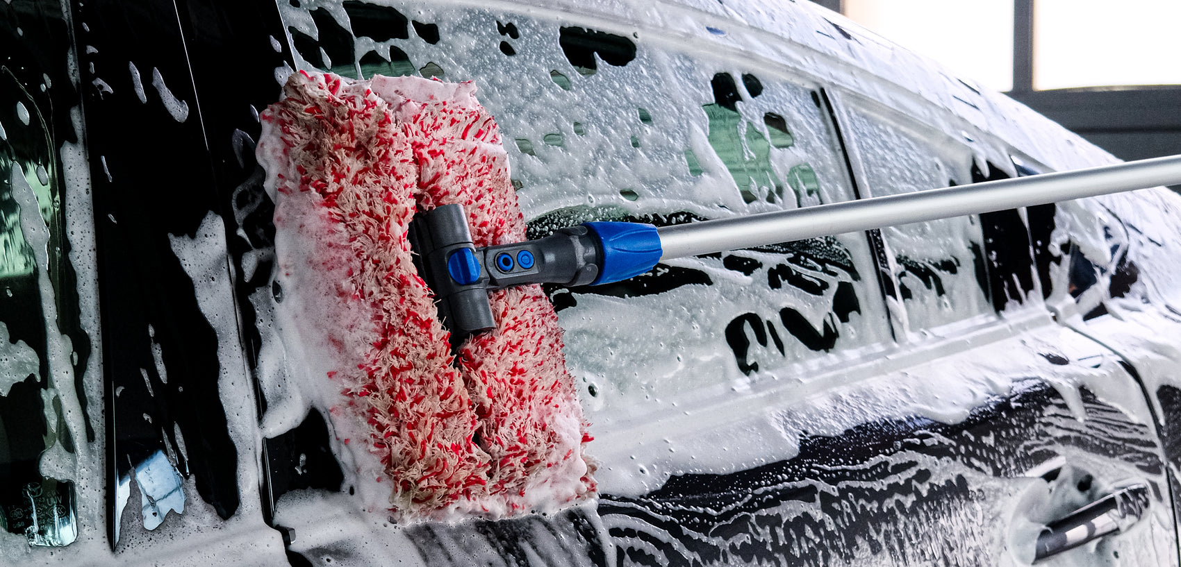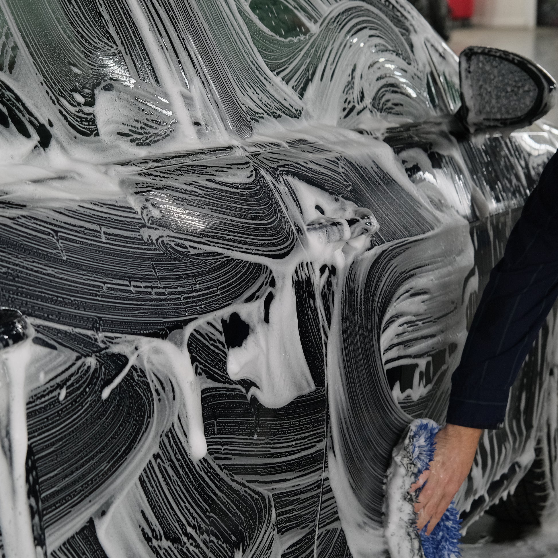 2. SEND A MESSAGE: Apply foam from the bottom up, covering every inch. Using a soft mitt, agitate gently panel by panel.