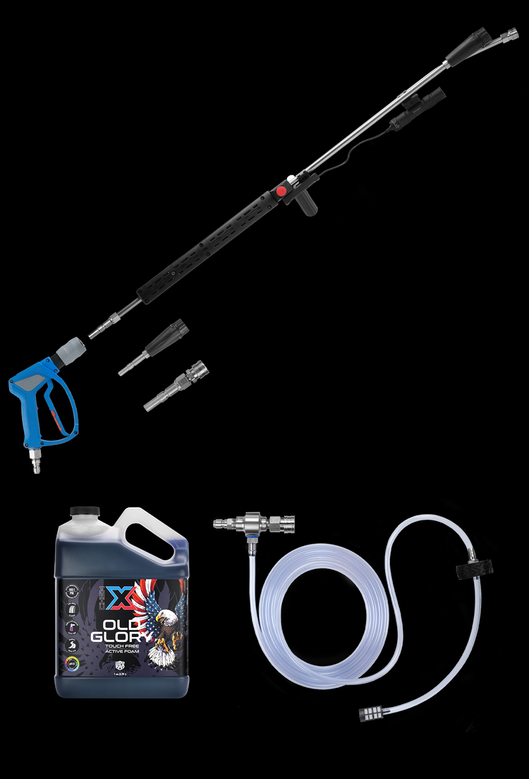 X Factor Complete Wash Bay System: Tactical Strike Wall Mounted 220v Electric - Freedom Foamer Touch Free Kit 3.5GPM @3,000PSI - Chem-X